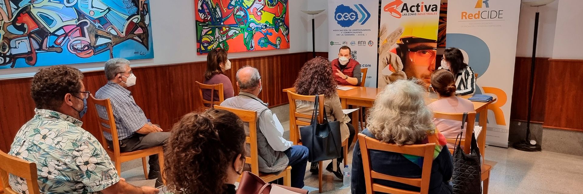 Durante la reunión de trabajo convocada por la Asociación de Empresarios y Comerciantes de La Gomera (AEG) con la colaboración de la Red Cide y Cámara de Comercio de Santa Cruz de Tenerife, se hizo un resumen de las actividades que se vienen impulsando desde la iniciativa “Activa tus Zonas Industriales de La Gomera”, se puso en común entre los participantes los conocimientos informales que se tienen en relación con el progreso de las acciones encaminadas por las distintas administraciones a lo largo del año y medio que la pandemia. Todos comprenden que dicha situación ha retrasado el desarrollo empresarial.